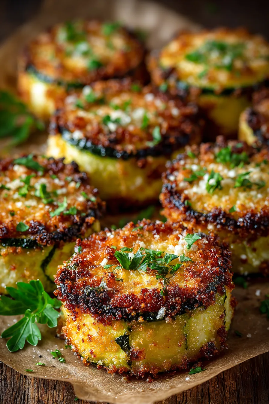 Baked Parmesan Crusted Zucchini transforms fresh zucchini into crispy, golden rounds with bold cheesy flavor. A simple Parmesan coating creates a crunchy exterior while the inside stays tender. This easy baked side dish works perfectly for weeknight dinners or party appetizers.