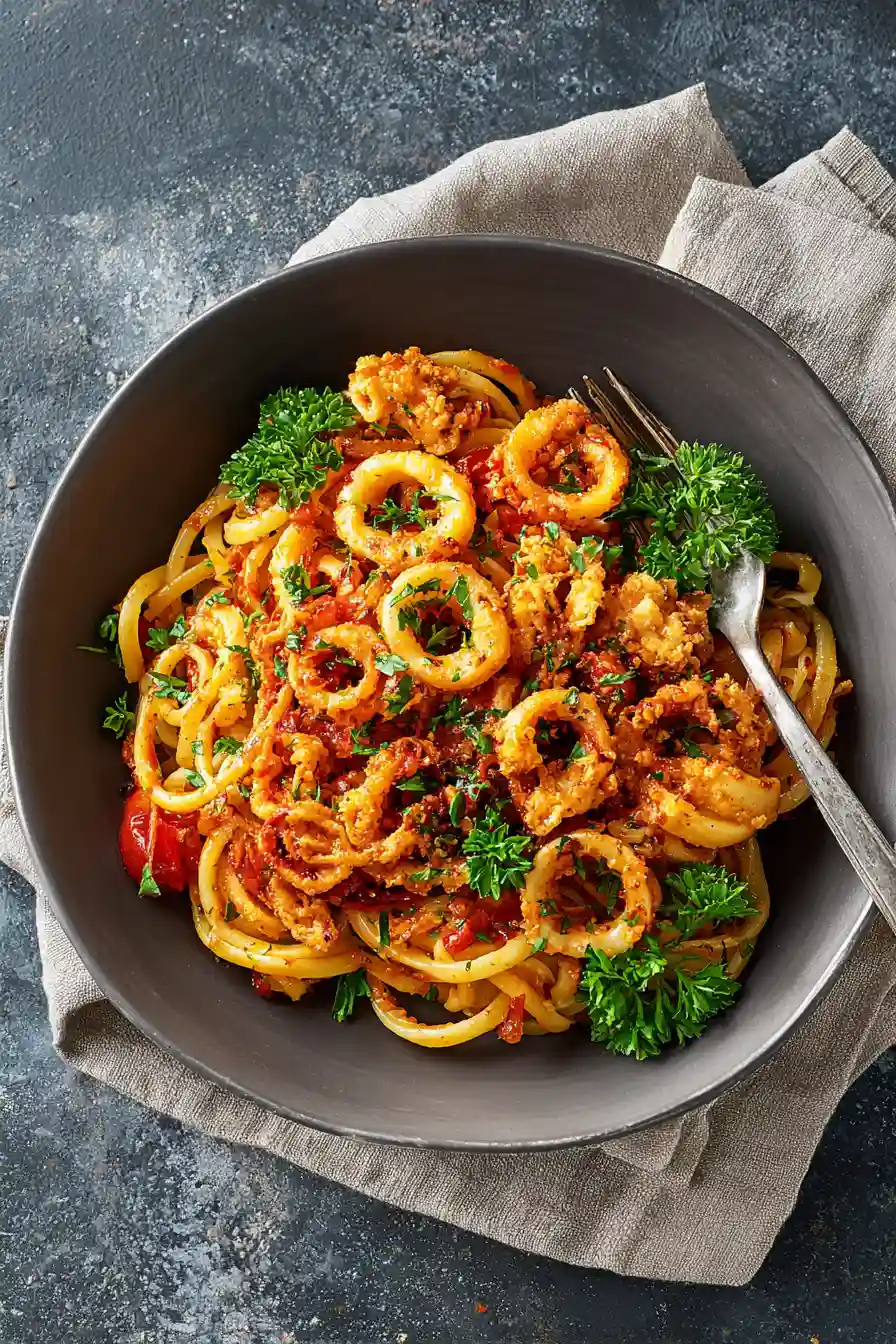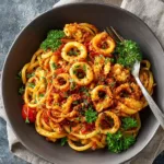 This calamari recipes pasta dish brings tender squid together with pasta in a simple, flavorful way. When cooked correctly, calamari stays soft and absorbs the sauce without turning chewy. This recipe fits busy nights while still feeling special on the plate.