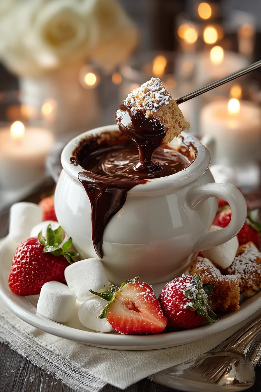 A romantic chocolate fondue for two — rich, easy, and perfect for date night.