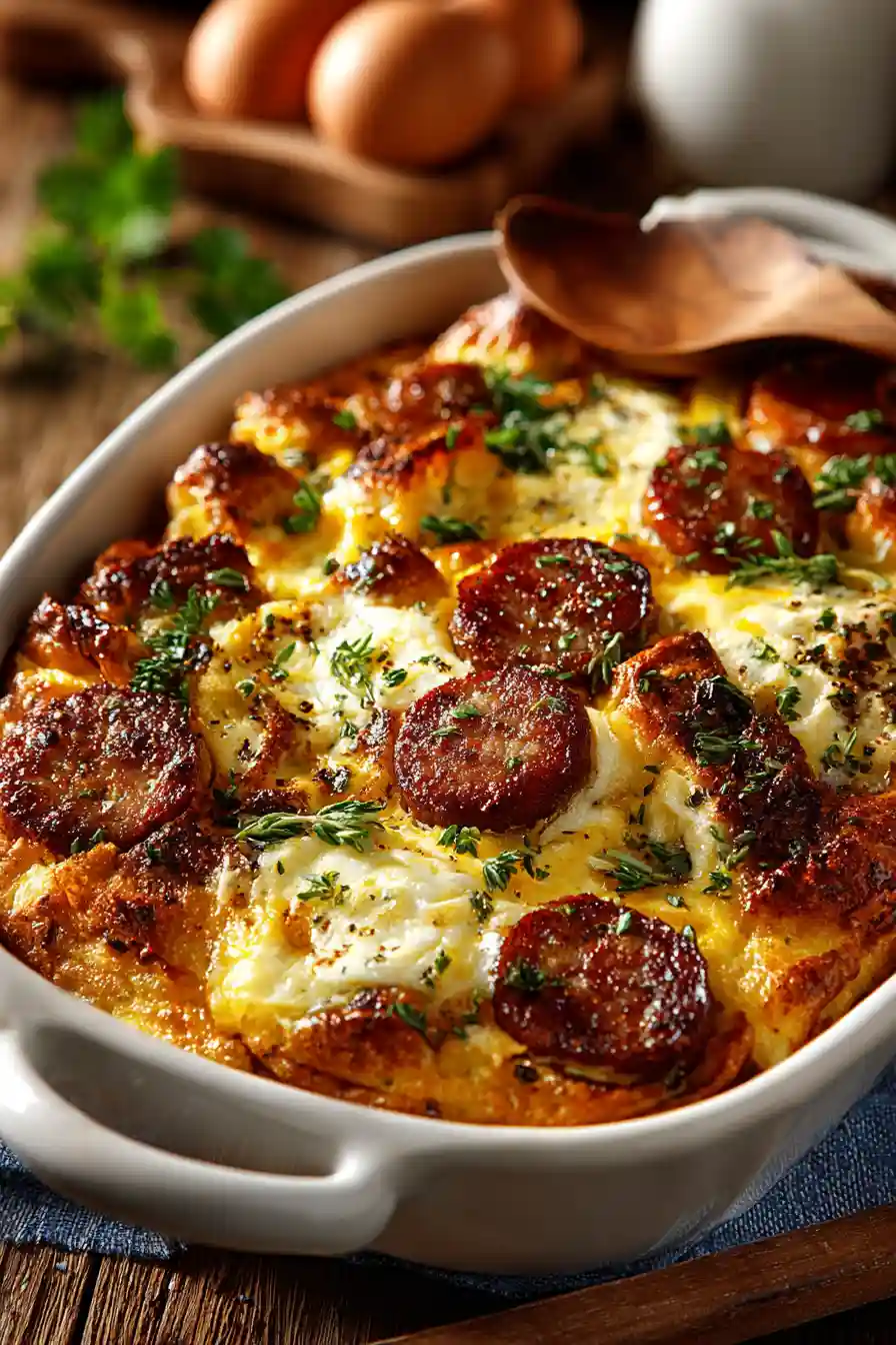 This classic sausage and egg breakfast casserole is proof that comfort food doesn’t need to be complicated. Bake it fresh, make it ahead, or freeze it — either way, it brings warmth and flavor to your table every time.
