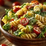 Creamy BLT Pasta Salad combines crispy bacon, fresh vegetables, and tender pasta in one satisfying bowl. It tastes rich, fresh, and comforting. Make it once, and it will become a favorite at every gathering.