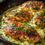Few dinners beat the Creamy Garlic Butter Chicken Skillet. Tender chicken breasts simmer in a rich, buttery cream sauce flavored with fresh garlic and herbs. It’s quick enough for weeknights yet fancy enough to serve guests. Every bite is silky, savory, and irresistible just the way comfort food should be.