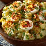 Deviled Egg Potato Salad blends creamy potatoes with bold, tangy deviled egg flavor in one satisfying dish. It tastes comforting, rich, and perfect for any gathering. Make it once and enjoy a standout side everyone will remember.