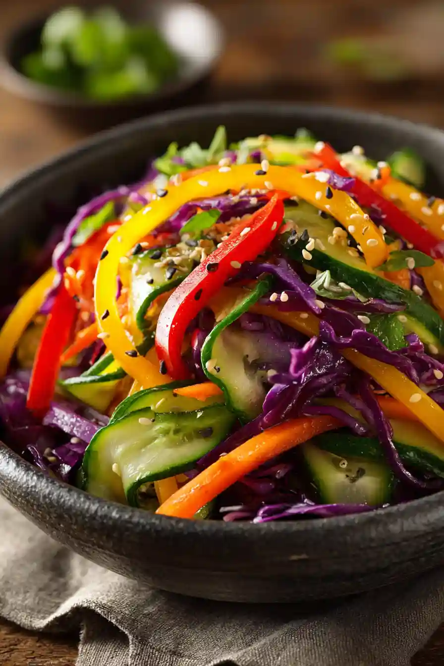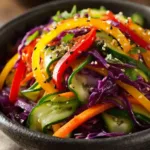 Easy Asian Rainbow Salad brings color, crunch, and bold flavor to your table. Crisp cabbage, bright carrots, sweet bell peppers, and cool cucumbers create a vibrant bowl that tastes as good as it looks. A simple sesame soy dressing ties everything together. This salad works for meal prep, potlucks, or quick weeknight dinners.