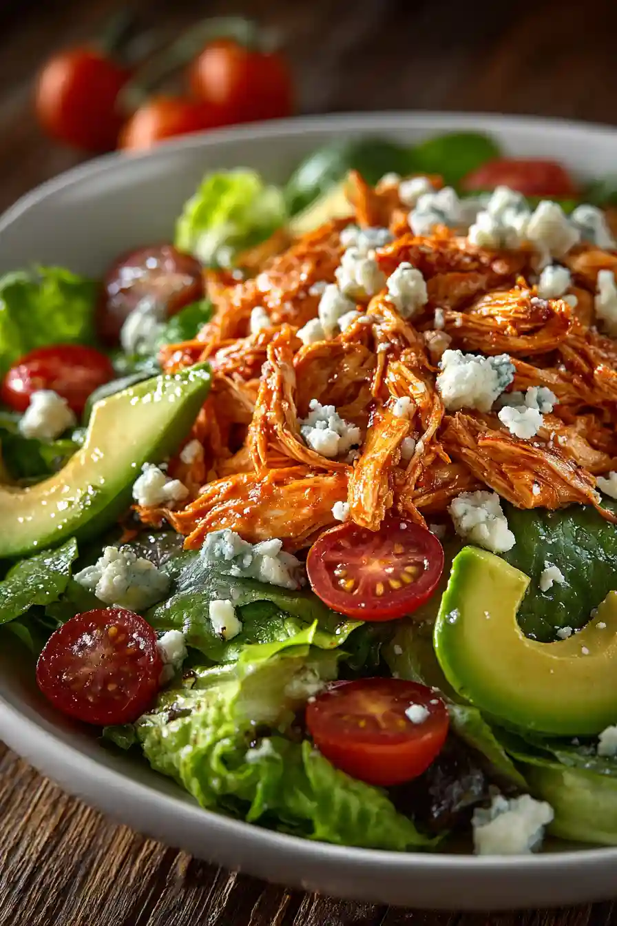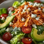 Healthy buffalo chicken salad delivers bold heat, crisp texture, and satisfying protein in every bite. Tender shredded chicken coats in tangy buffalo sauce, then layers over fresh greens and crunchy vegetables. It tastes vibrant, filling, and balanced. This salad turns a classic comfort flavor into a fresh, energizing meal.