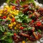 Sweet heat meets fresh crunch in these Hot Honey Chicken Bowls with Fresh Corn Salsa. Juicy chicken glazed in sticky hot honey pairs perfectly with crisp corn, lime, and herbs. Every bite tastes balanced, bold, and satisfying.