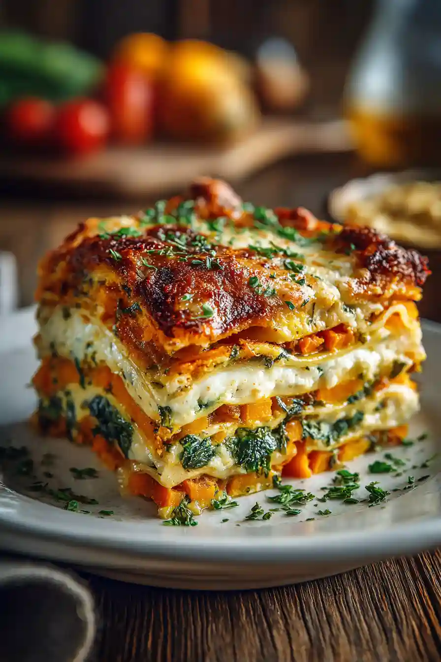 Layered Sweet Potato Butternut Squash Carrot Lasagna
