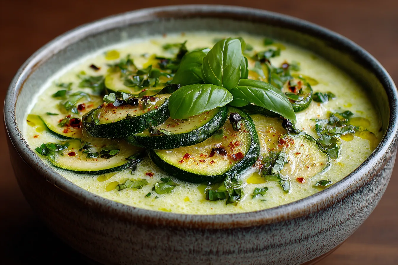 A refreshing, plant-based summer soup with zucchini, basil, and vegetable broth. Creamy texture without added fats, perfect for health-conscious cooks.