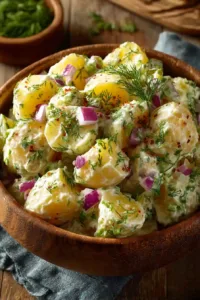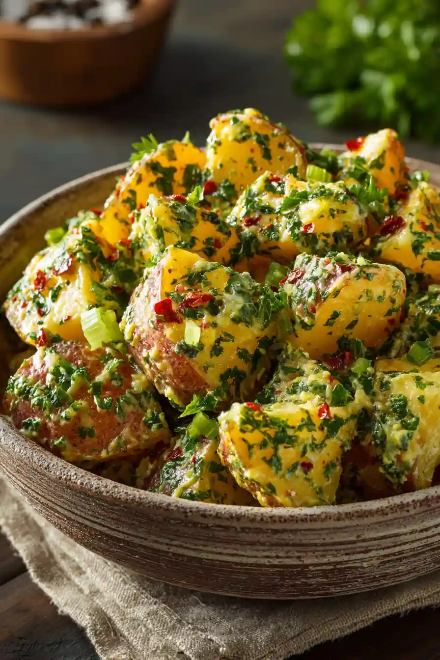 Tender potatoes tossed in a bold mustard dressing create this No Mayo Mustard Potato Salad. Fresh herbs, crisp celery, and a splash of vinegar add bright, tangy flavor without heavy mayo. This chilled side dish tastes clean, vibrant, and perfect for BBQs, picnics, or weeknight dinners.