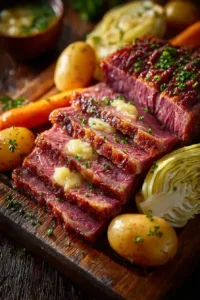 Serve with whole grain mustard or horseradish sauce. Add warm Irish soda bread or a crisp green salad. A sparkling apple cider pairs nicely with the savory flavors.