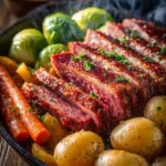 The scent of simmering spices and tender beef fills the kitchen as this Slow Cooker Corned Beef with Red Potatoes cooks gently all day. Red potatoes turn creamy and hold their shape, while the brisket becomes fork-tender. It’s a simple, comforting meal that feels right at home on a Sunday table.