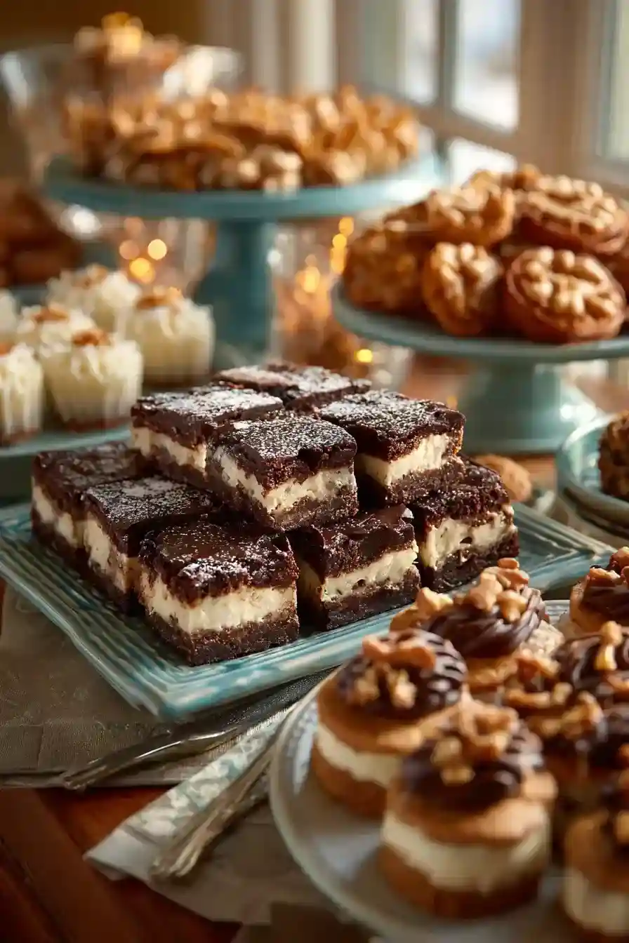 Brownies, cookie bars, cheesecake cups, and no-bake treats work well.