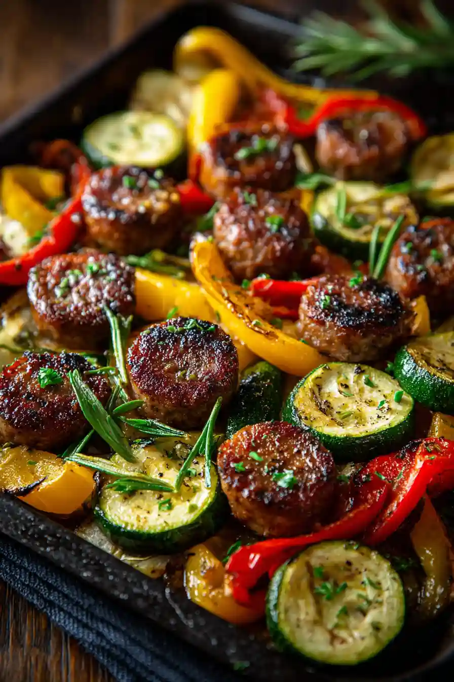 Zucchini and Sausage Sheet Pan Dinner tastes best when vegetables roast in a single layer without overcrowding.